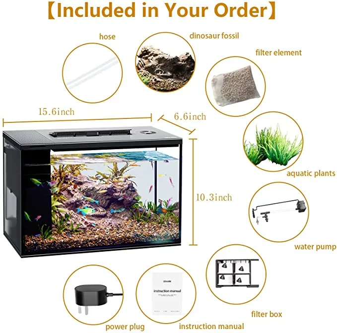 - 4 gallon aquarium with dedicated internal filter area.