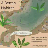 Here is an illustration of a Betta's habitat and the reason why the pet industry profits from the misconception that Bettas enjoy small spaces.