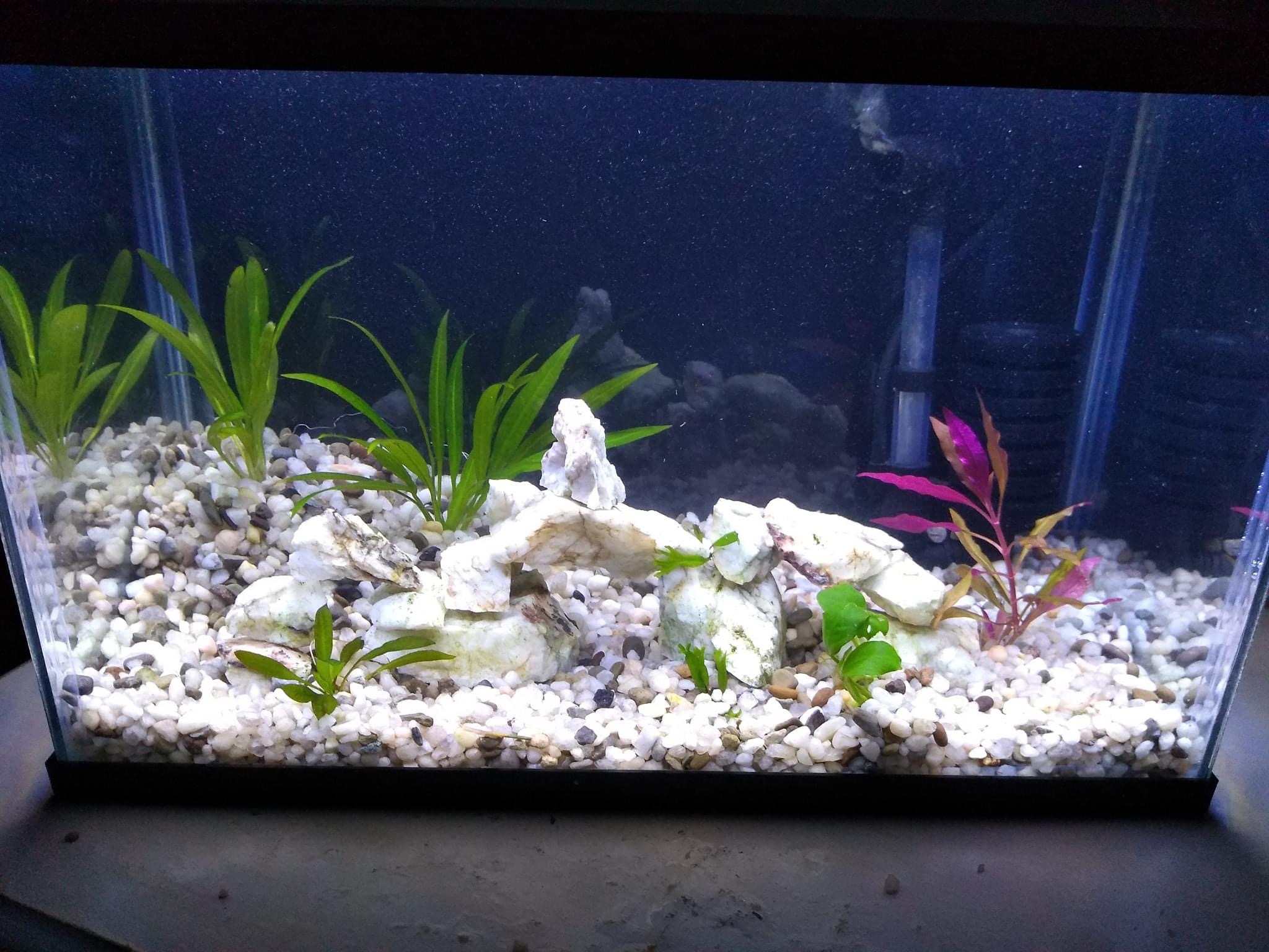 Hey everyone! Just wanted to share a small 10 gallon tank I just got started recently and am still working on. So far just have the hardscape with some plants going on, still debating what to put inside of it though.